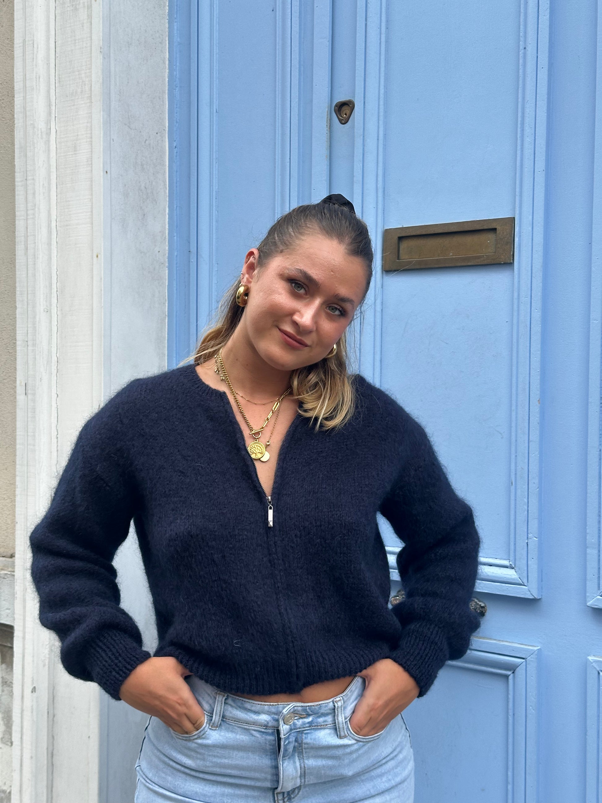 Sobre et élégant, ce gilet bleu marine zippé est une pièce polyvalente. Chaud et confortable, il se porte aussi bien sur un look décontracté que plus habillé. Un basique intemporel à avoir absolument.
