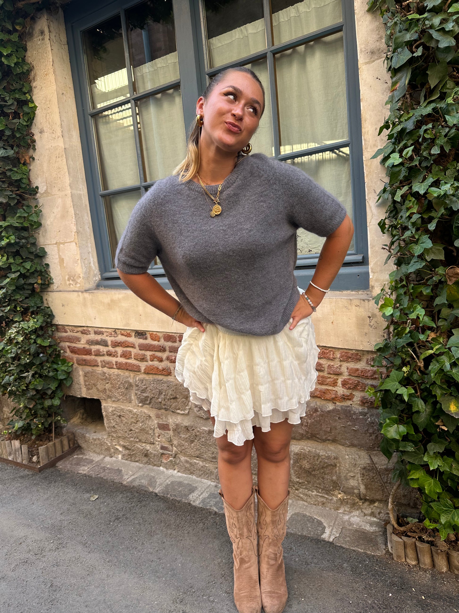 Minimaliste et moderne, ce haut sans manches gris s’adapte à toutes les occasions. Sa coupe ajustée met en valeur la silhouette tout en offrant une grande liberté de mouvement. Facile à associer, il se marie aussi bien avec un jean décontracté qu’une jupe plus élégante. Un essentiel à avoir pour des looks simples mais toujours stylés.