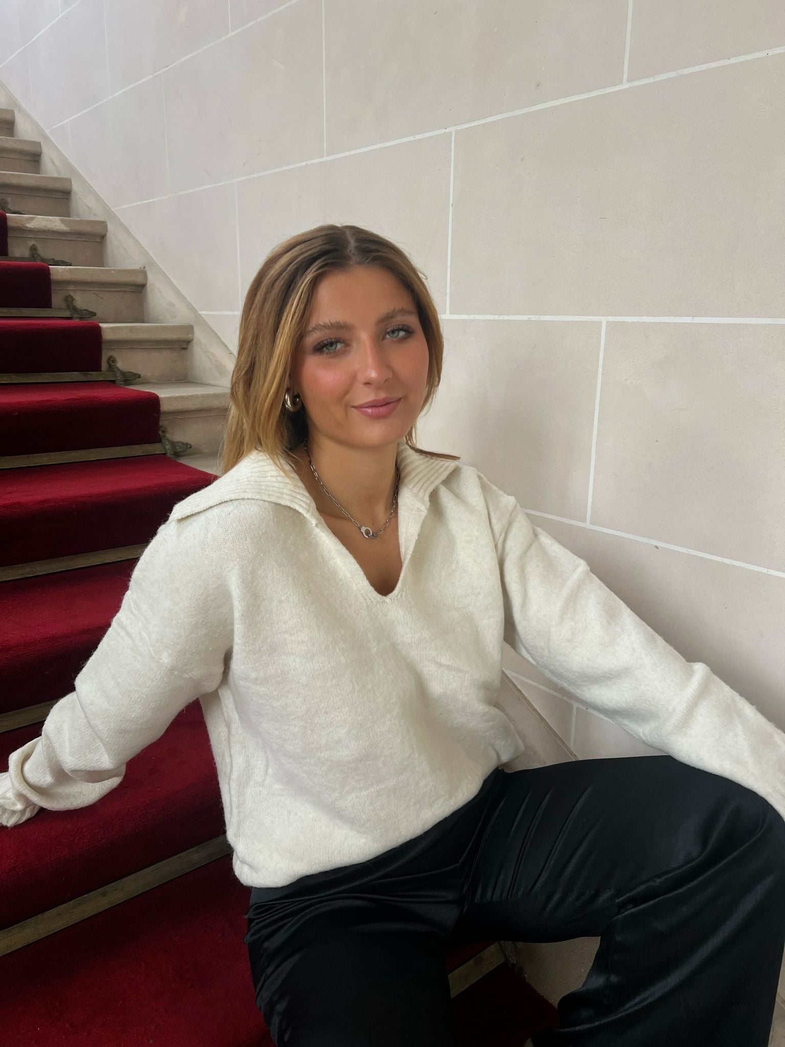 Pull col V en maille fine et souple, qui met subtilement en valeur le décolleté.